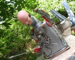 Manolis arbeitet völlig unbeeinflusst von den Auswüchsen der Souvenirproduktion. Der Meister ist gealtert und mit ihm die Werkstatt, die sich in all den Jahren tapfer den Neuerungen verweigerte. Da ist das windschiefe Tischchen, das schon bei meinem Besuch 1985 fast umzufallen drohte. Es steht noch immer. "Pock, Pock, Pock" - hart klingt